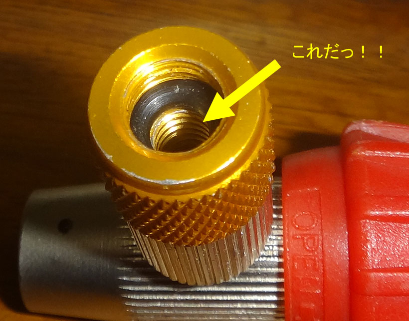 赤ヘッドの挿入口を覗き込むと・・・・・あれ!?・・・・ネジが切ってあるぞ!
